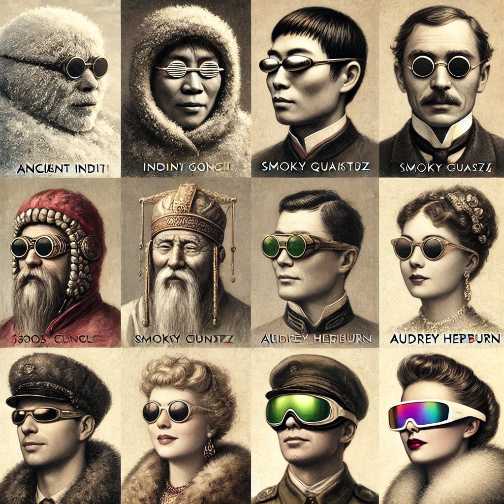선글라스(Sunglasses)는 단순한 패션 아이템을 넘어 눈을 보호하고 인간의 시각을 보완하며, 때로는 신분을 숨기거나 권위를 드러내는 도구로 수천 년간 진화해왔다. 고대 북극의 눈 보호구에서 현대의 세련된 디자인까지, 선글라스는 기능성과 미학의 경계를 넘나들며 인류 역사에 깊은 흔적을 남겼다. 그 발전 과정에는 창의적인 발명가들, 군사적 필요, 사회적 금기, 그리고 예상치 못한 우연이 얽혀 있다.