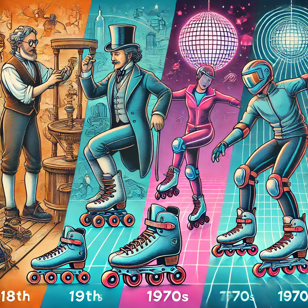 롤러스케이트의 역사는 18세기 유럽에서 얼음 스케이팅을 모방하려는 시도에서 비롯된다. 최초의 롤러스케이트는 1743년 영국 런던에서 공연 중이던 배우 존 조셉 멀린(John Joseph Merlin)에 의해 소개되었다. 벨기에 출신의 발명가이자 악기 제작자인 멀린은 다재다능한 인물로, 바이올린을 연주하며 얼음 스케이트를 대체할 장치를 선보였다. 그는 나무 바퀴를 금속 프레임에 붙인 신발을 신고 무대에 등장했지만, 브레이크가 없는 설계 탓에 벽에 충돌하며 큰 웃음을 자아냈다. 이 사건은 롤러스케이트의 첫 공식 데뷔로 기록되지만, 실용성보다는 퍼포먼스로 끝났다.