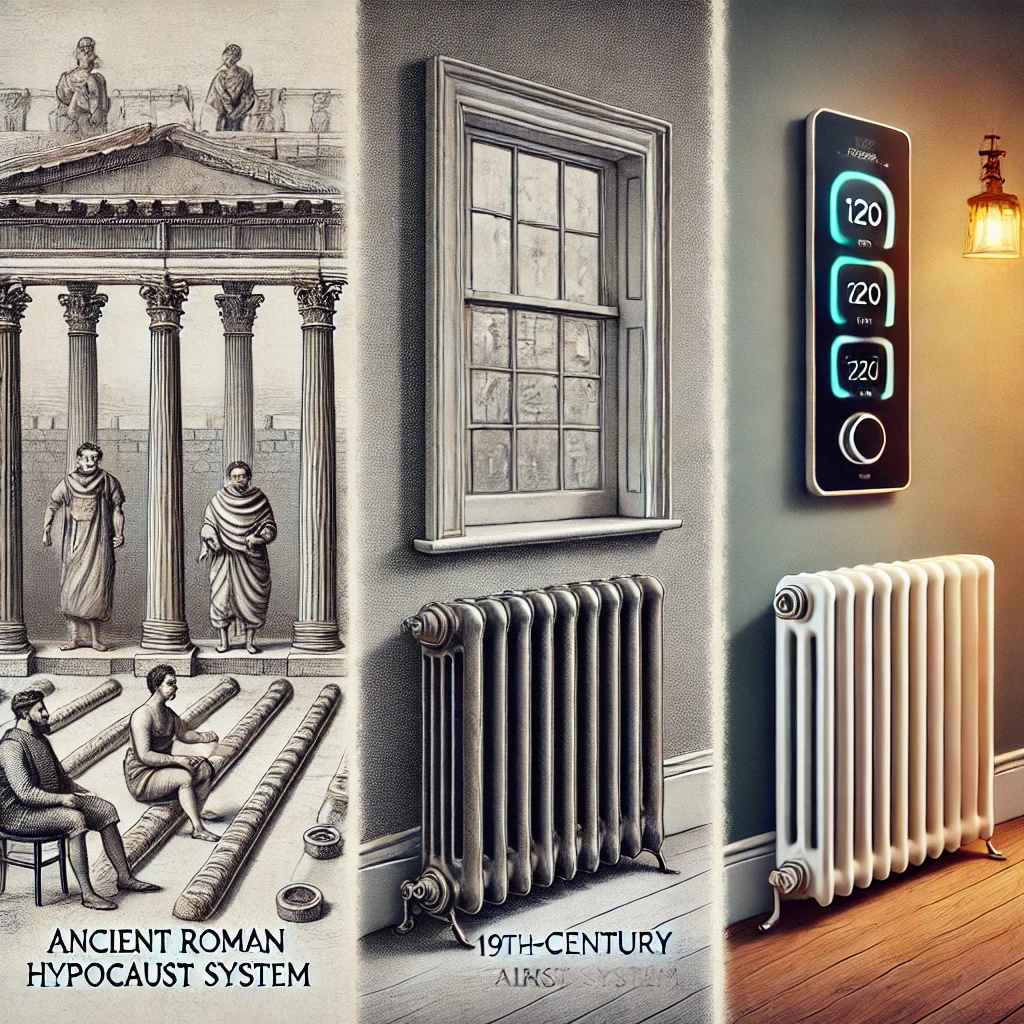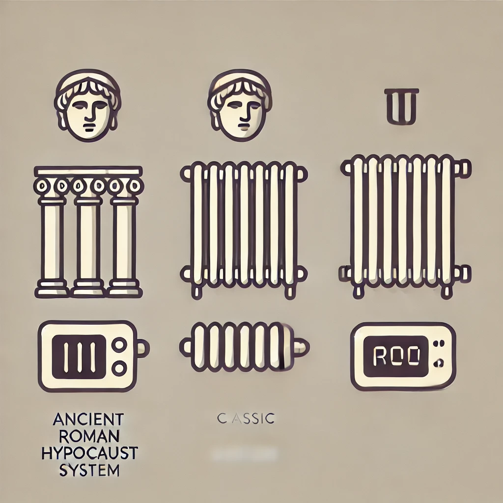 라디에이터의 개념은 인류가 불을 이용해 난방을 시작한 고대 시기로 거슬러 올라간다. 기원전 1200년경 고대 로마에서는 “히포코스트(hypocaust)“라는 난방 시스템이 등장했다. 이는 건물 바닥 아래 공간에 뜨거운 공기를 순환시켜 난방을 제공하는 방식으로, 현대 라디에이터의 열 전달 원리와 유사성을 보인다. 히포코스트는 주로 공공 목욕탕이나 귀족 가문의 저택에서 사용되었으며, 로마 제국의 기술적 우수성을 보여주는 사례였다.