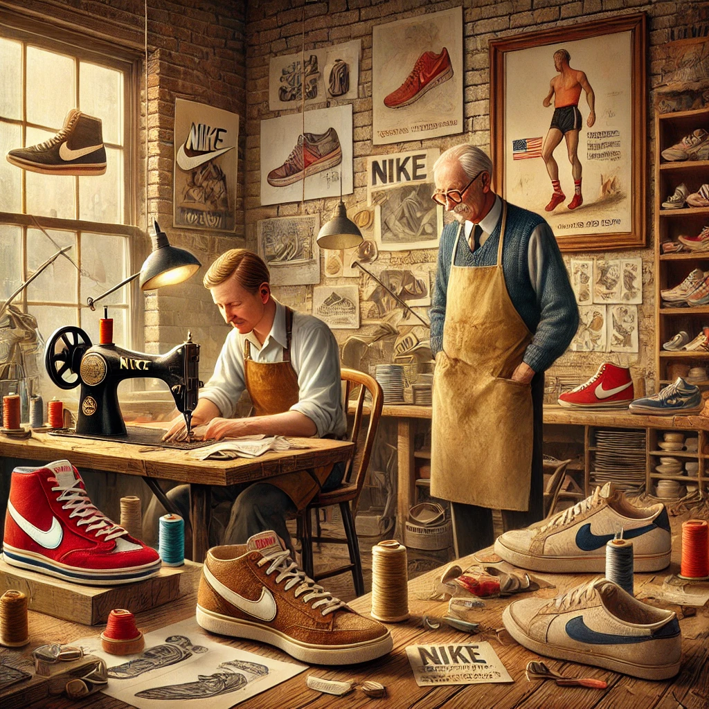 나이키의 이야기는 1960년대 미국 오리건주에서 시작된다. 필 나이트(Phil Knight)는 오리건 대학교의 중거리 육상 선수로, 코치인 빌 바우어만(Bill Bowerman) 밑에서 훈련받았다. 바우어만은 독창적인 아이디어로 유명한 인물로, 선수들의 기록을 개선하기 위해 신발을 직접 개조하곤 했다. 나이트는 스탠퍼드 경영대학원에서 MBA를 마친 후, 1962년 석사 논문에서 “일본의 저렴한 기능성 운동화가 미국 시장을 장악할 수 있다”는 주장을 펼쳤다. 당시 미국은 독일 브랜드 아디다스와 푸마가 지배하던 시장이었고, 일본 신발은 값싼 대안으로 주목받지 못했다.