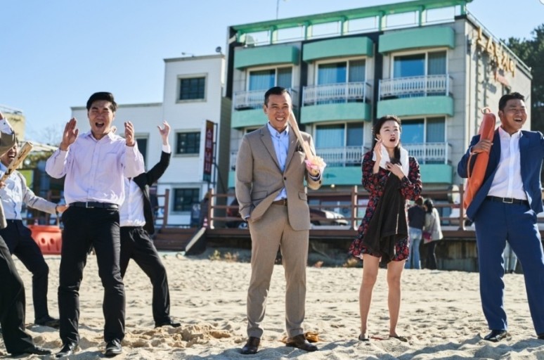 영화 초반, 길석이 부하의 결혼식을 축하하며 크레인을 동원해 신고식을 치르는 장면은 유쾌하면서도 조직의 끈끈함을 보여줘요. 바닷가에서 웃고 떠드는 모습은 이후의 비극을 암시하며 강한 대비를 이루죠. 유오성의 자연스러운 연기가 이 장면을 더 빛나게 했어요.