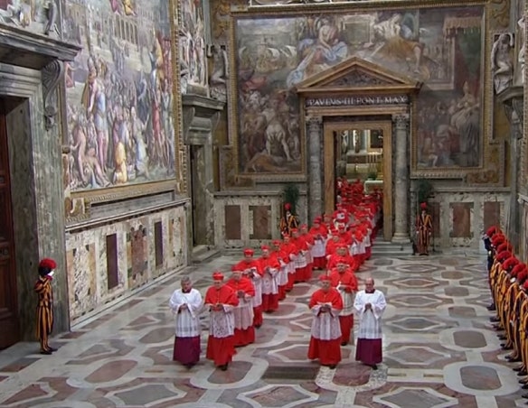 콘클라베 당일, 추기경들은 성 베드로 대성전에서 미사를 드린 뒤 시스티나 성당으로 행진한다. 성당 입구에서 “엑스트라 옴니스”(Extra Omnes, ‘모두 나가라’)라는 선언과 함께 외부인은 퇴장하고, 문은 잠긴다. 이 순간부터 추기경들은 외부와 완전히 단절된다. 휴대폰, 인터넷, 심지어 편지조차 허용되지 않으며, 스위스 근위대가 성당을 철저히 경호한다.