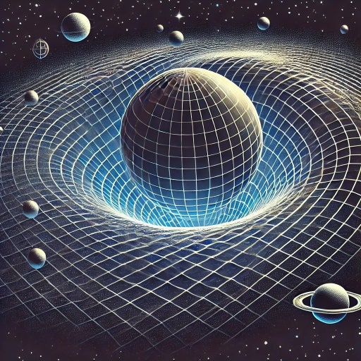 아인슈타인은 공간과 시간을 별개의 개념이 아니라, 4차원 시공간으로 통합했다. 질량이 큰 물체(예: 태양)는 시공간을 휘게 만들고, 이 굴곡이 중력으로 나타난다. 이를 비유로 설명하자면, 트램펄린 위에 무거운 볼링공을 올려놓으면 천이 휘어지고, 그 주변을 작은 구슬이 돌게 된다. 행성이 태양 주위를 도는 이유도 이와 같다.