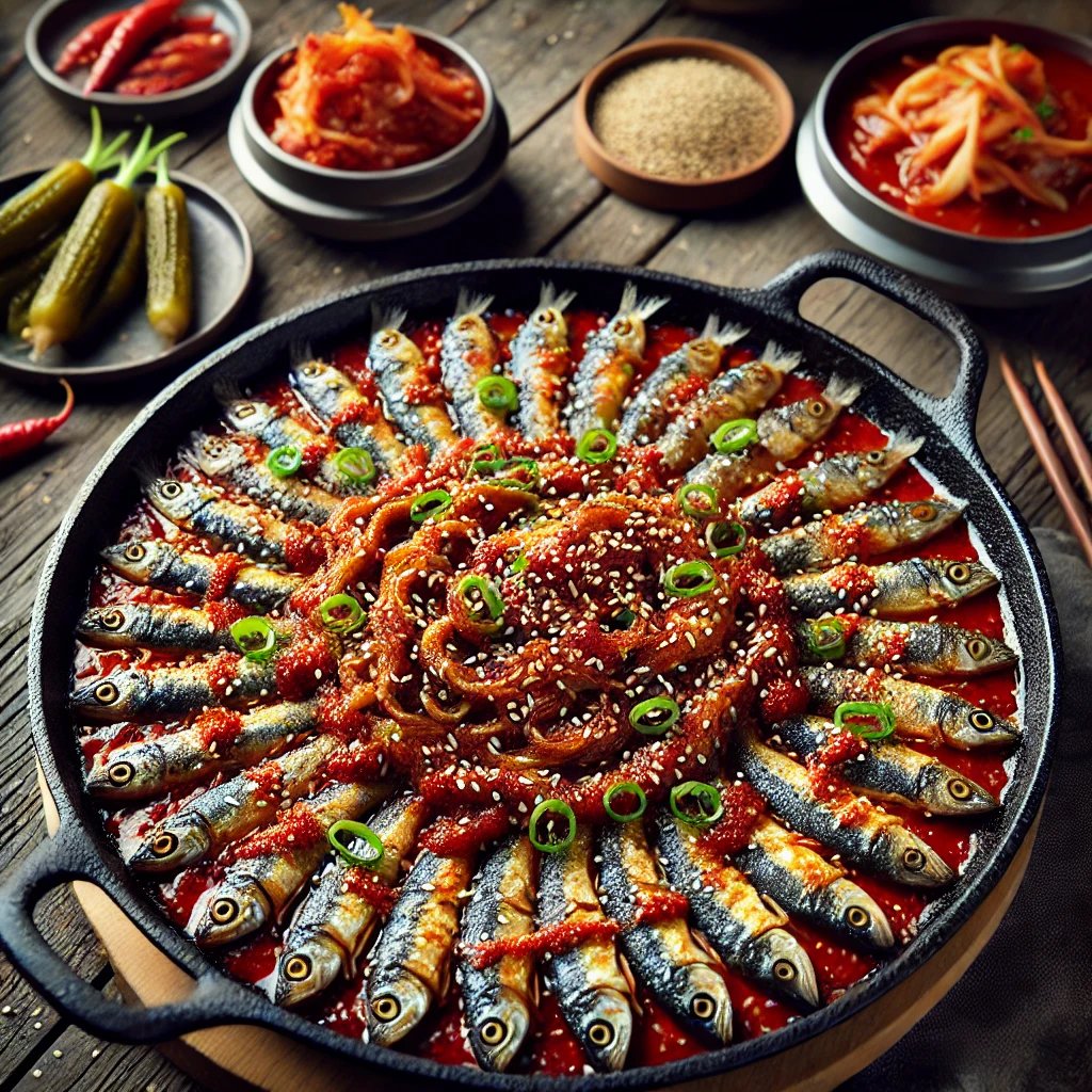 이름부터 독특한 이 요리는 충청남도 금강 유역에서 시작된 전통 음식으로, 작은 민물고기를 둥글게 배치해 바삭하게 튀긴 후 매콤한 양념을 더한 요리다.