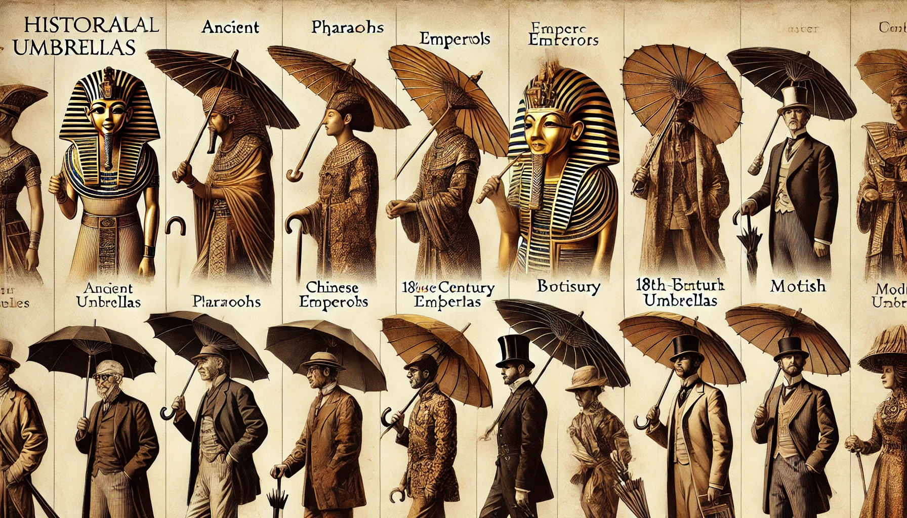 고대 이집트에서 우산은 단순한 생활 도구가 아니었다. **파라오(Pharaoh)**만이 사용할 수 있는 신성한 물건이었다. 이들은 왕을 신격화했기 때문에, 태양신 ’라(Ra)’의 가호 아래에서만 존재할 수 있었다. 우산은 라의 보호를 상징했으며, 귀족이나 일반인은 감히 사용할 수 없었다.